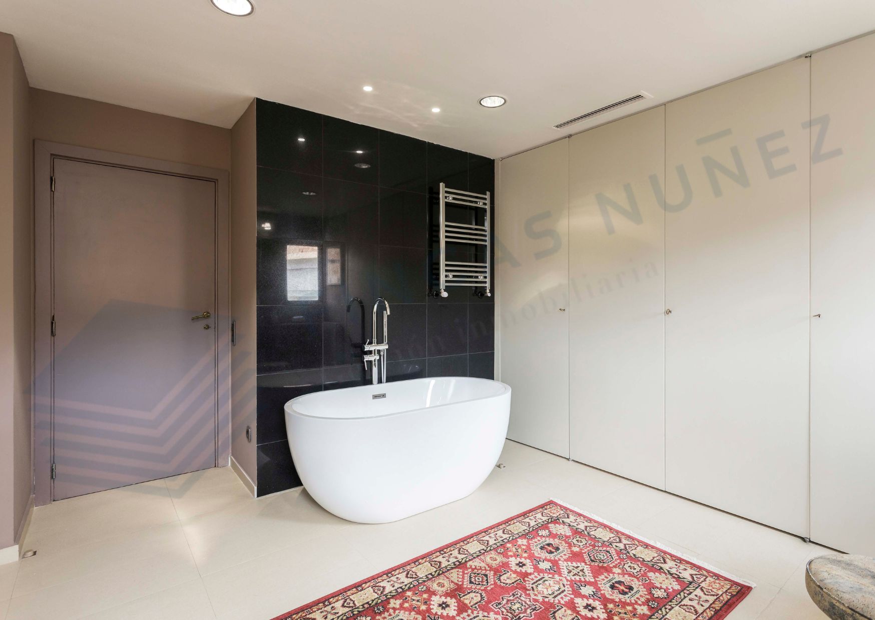 La zona de noche ofrece una magnífica suite principal con amplio vestidor independiente y baño privado, además de tres suites adicionales, todas con su propio baño, garantizando confort y privacidad. Un elegante patio interior aporta luz natural y carácter a la vivienda.