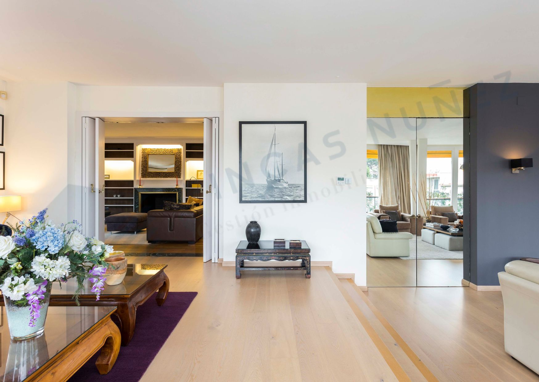 Dispone de grandes salones con salida directa a terrazas exteriores, comedor independiente y biblioteca. Cocina office completamente equipada con zona de lavadero. Incluye zona de servicio con habitación y baño.