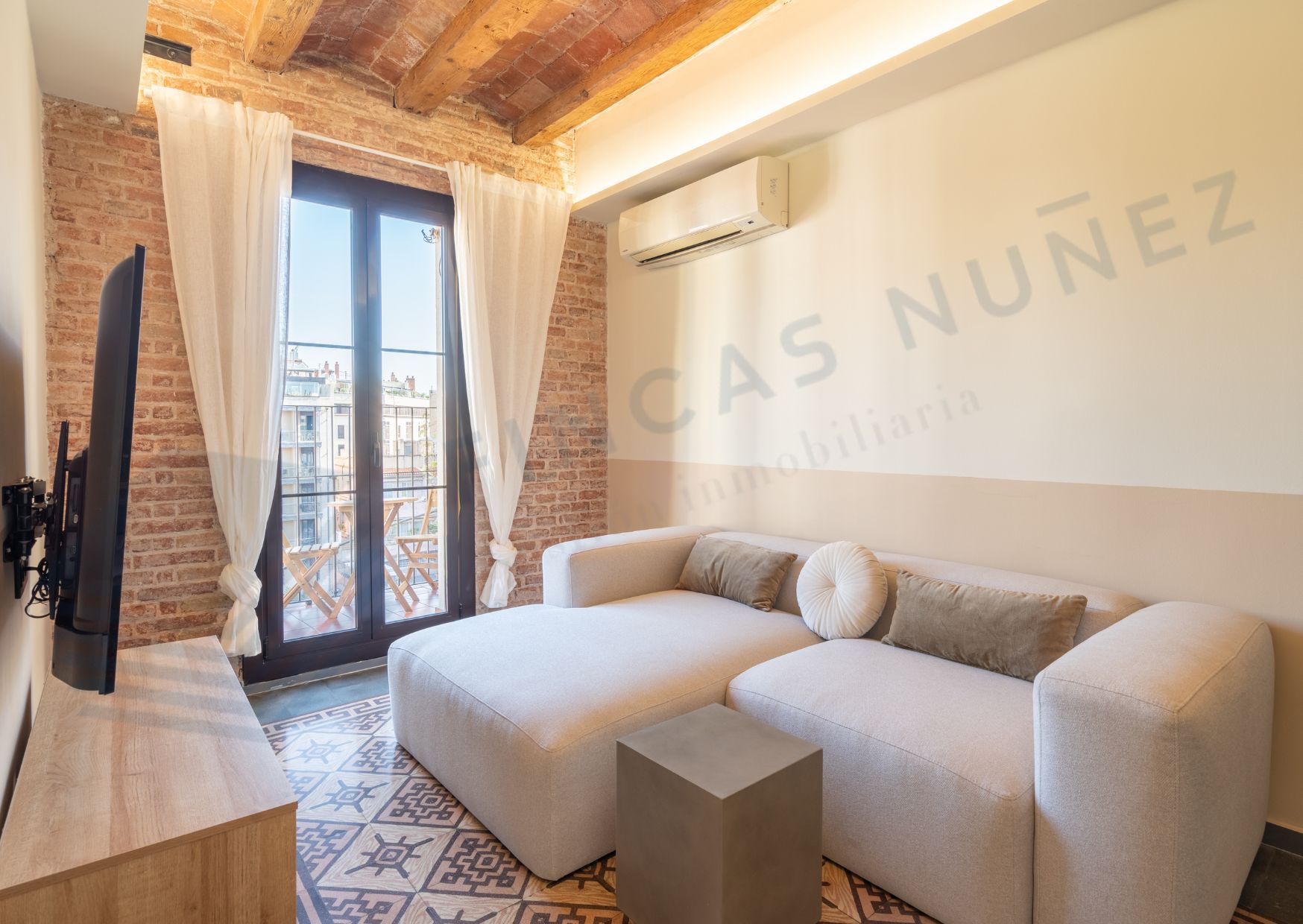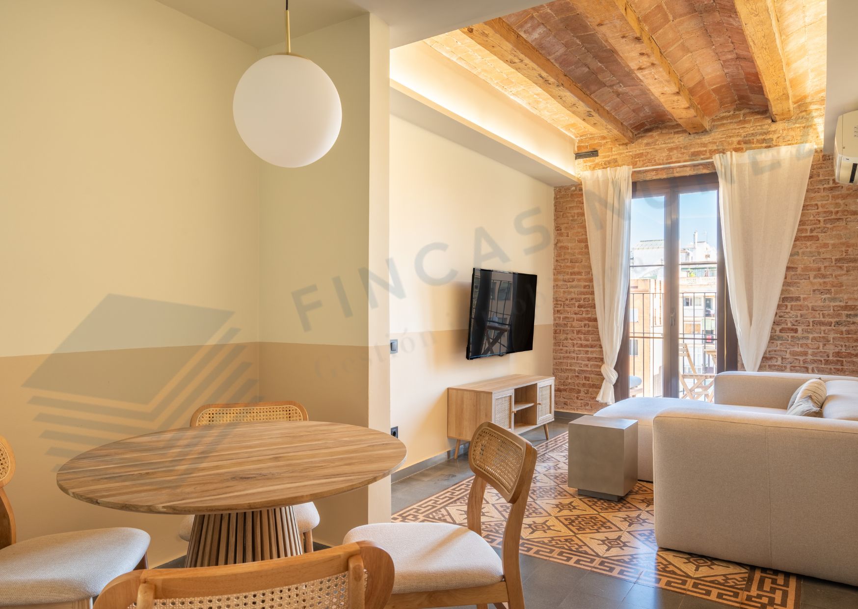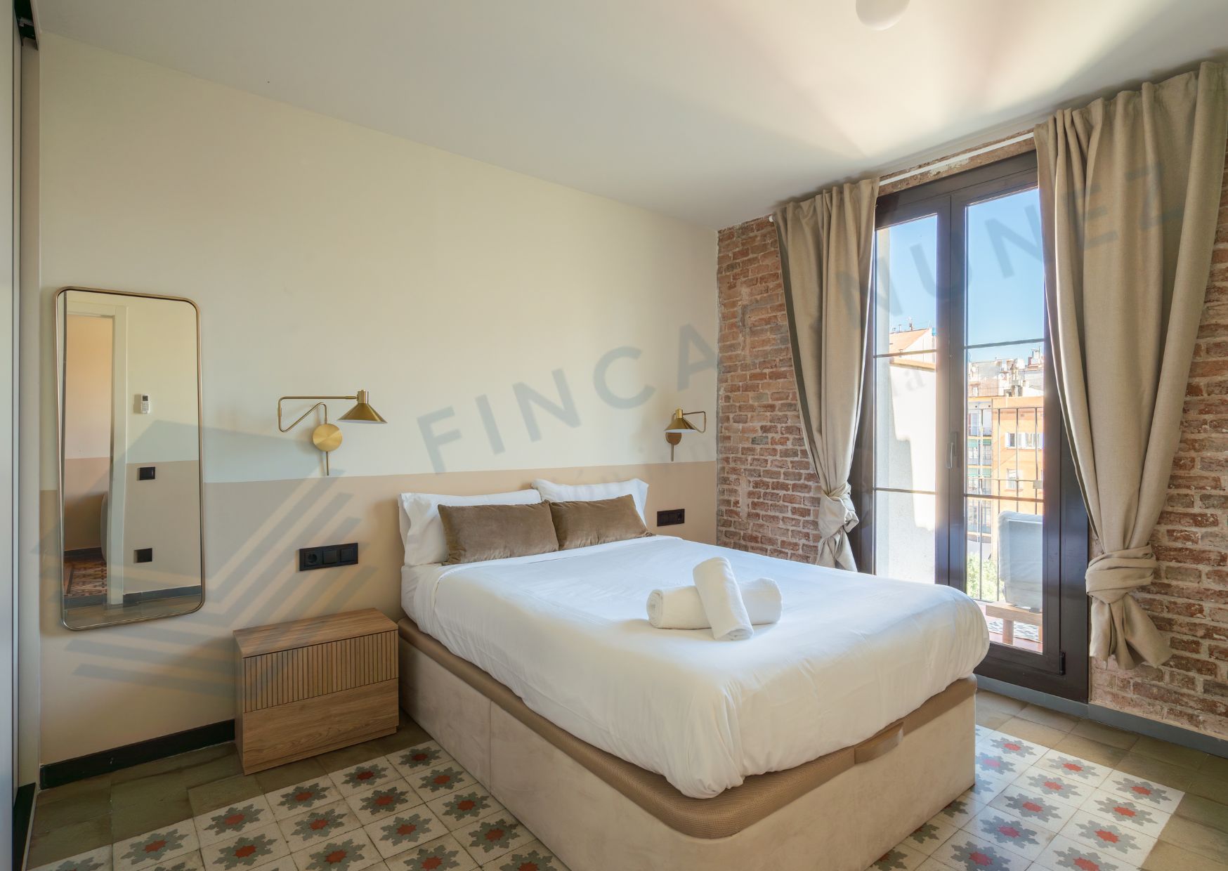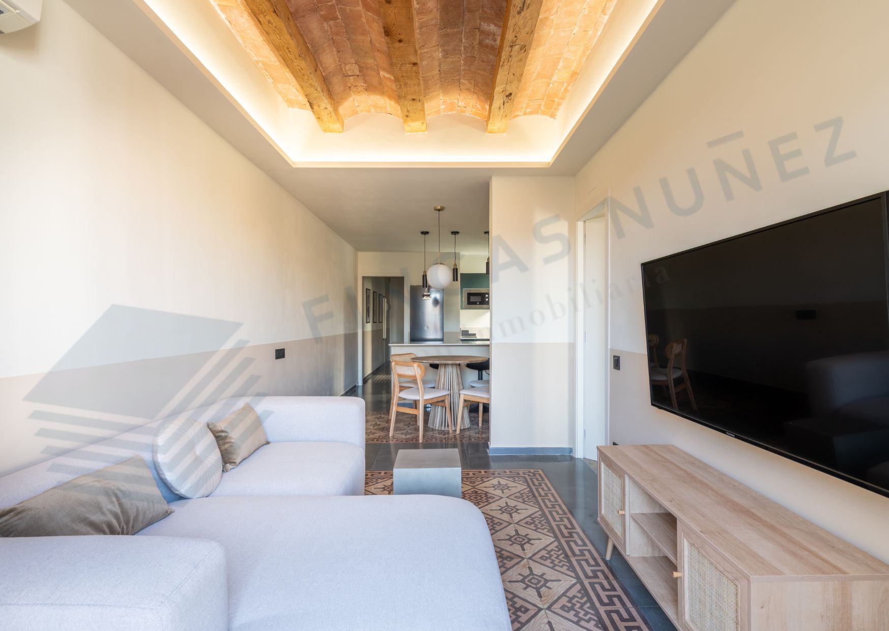 Al entrar, serás recibido por techos tipo volta catalana y suelos hidráulicos que añaden carácter y estilo a cada rincón. Con dos habitaciones dobles y dos baños completos, esta vivienda es perfecta para parejas, familias o compañeros de piso que buscan comodidad y privacidad.