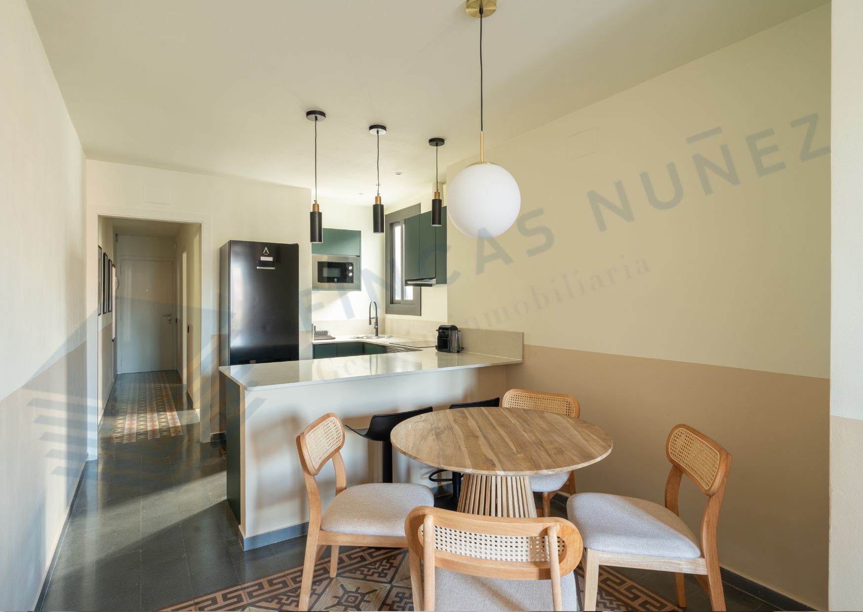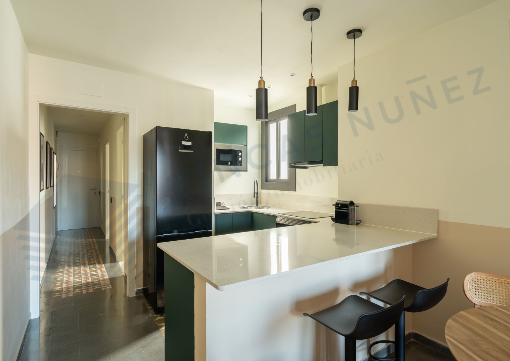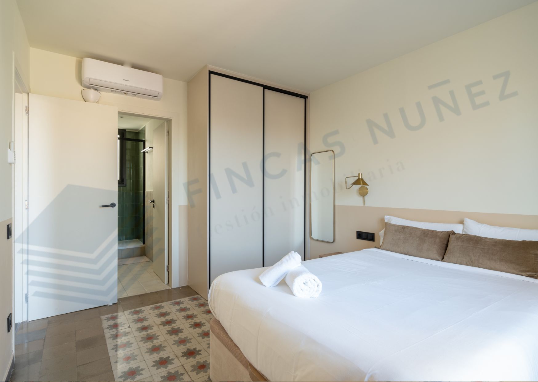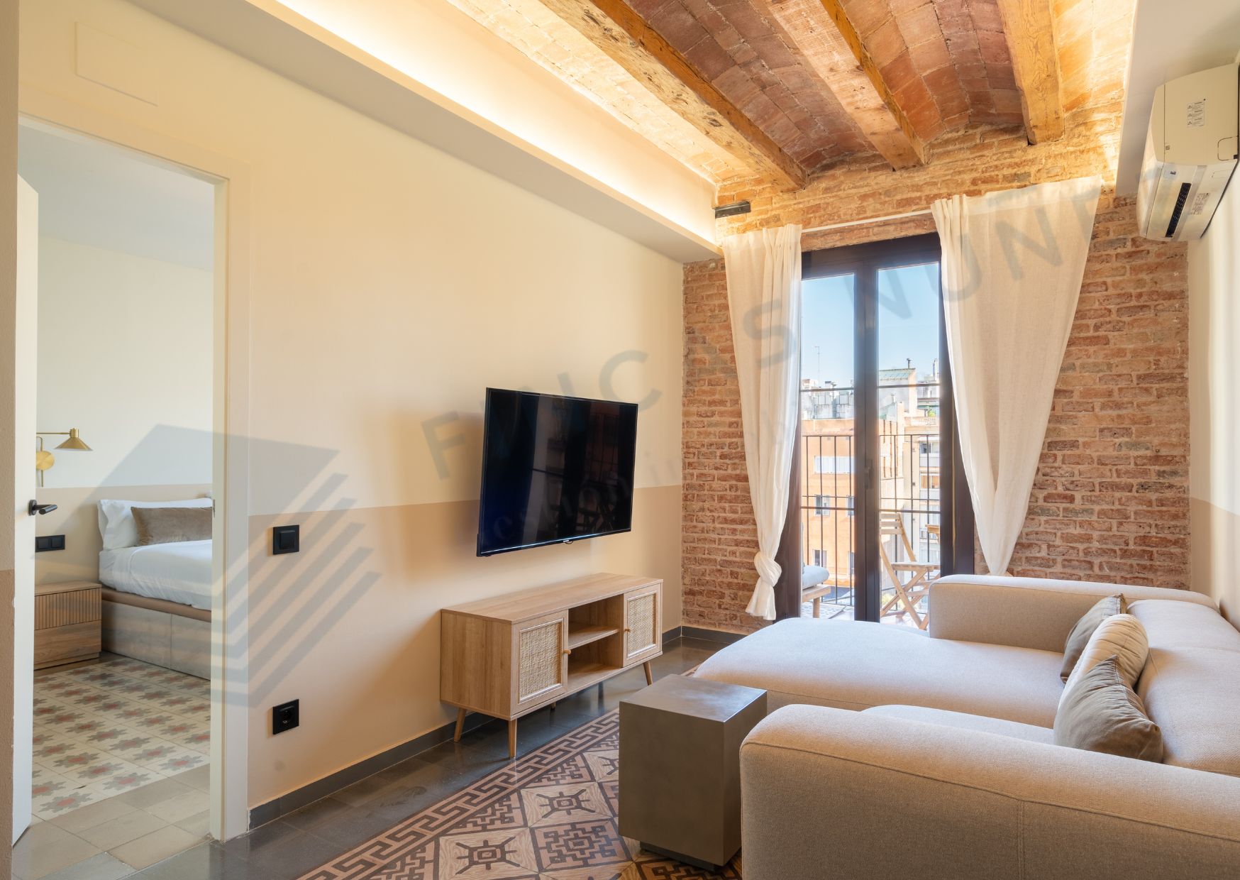 Al entrar, serás recibido por techos tipo volta catalana y suelos hidráulicos que añaden carácter y estilo a cada rincón. Con dos habitaciones dobles y dos baños completos, esta vivienda es perfecta para parejas, familias o compañeros de piso que buscan comodidad y privacidad.