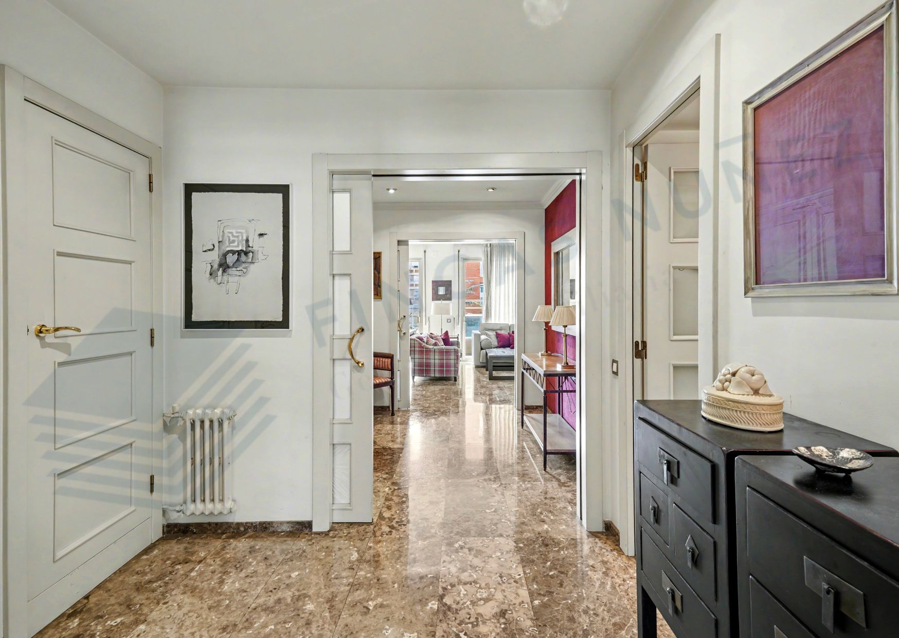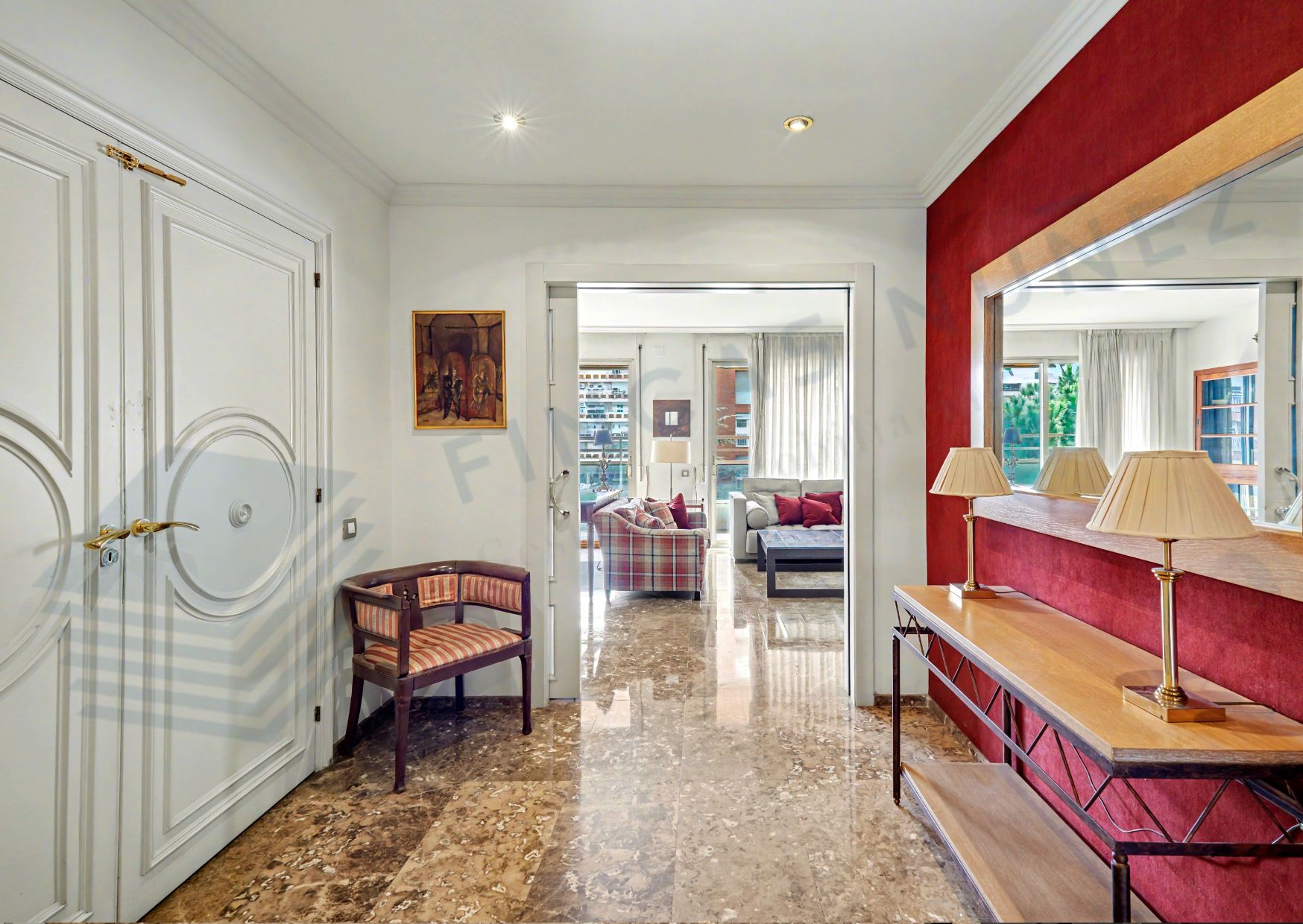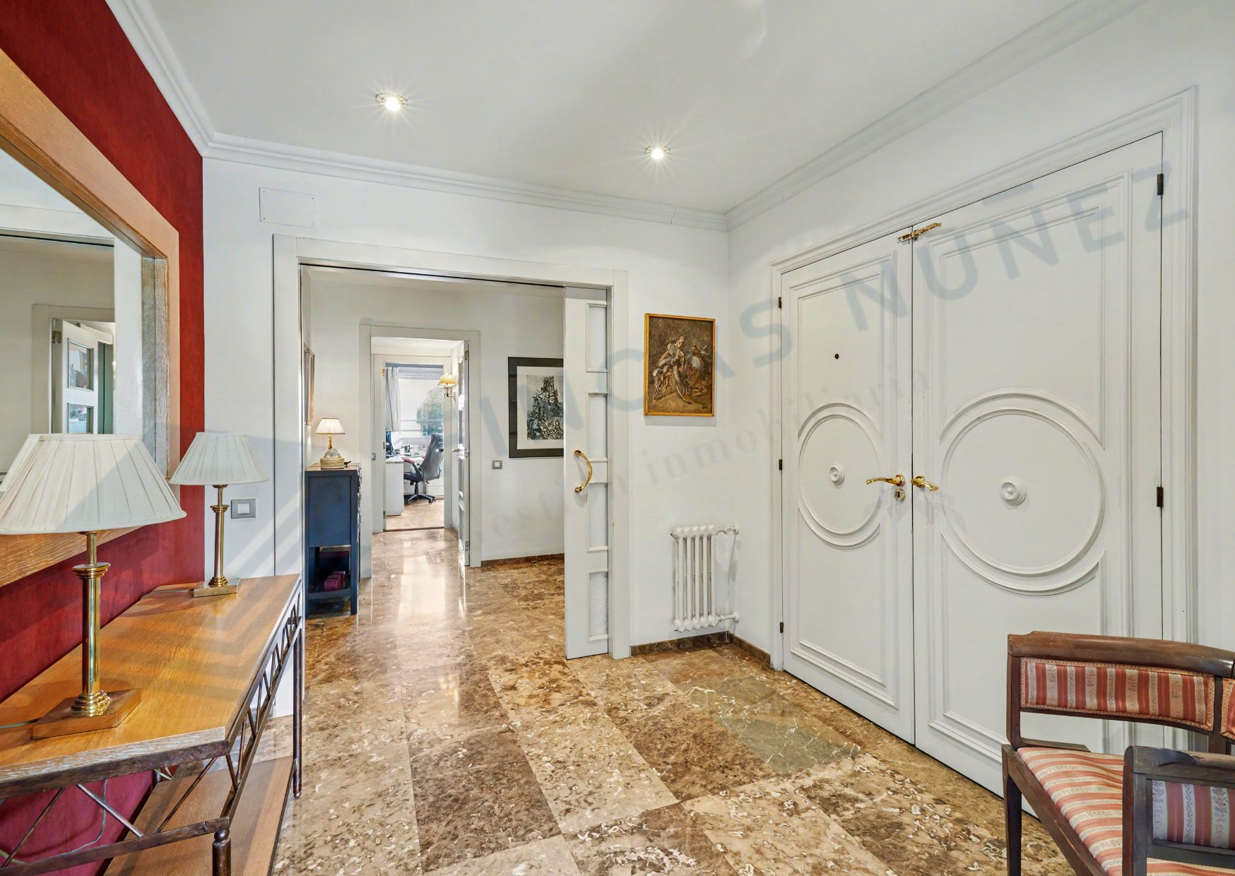 La exclusividad del piso se percibe desde el primer momento: el ascensor accede directamente a un rellano privado que conduce a un amplio recibidor, desde el cual se distribuyen de forma clara las zonas de día y de noche, proporcionando comodidad y privacidad.